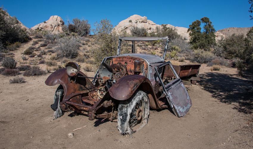 If you’re coming as a Wild West Challenge participant, the best way is from your Twentynine Palms stop. Take Park Boulevard to the south, pass Jumbo Rocks Campground, then follow the sharp bend north that skirts Skull Rock Nature trail. Take the second exit. O’Dell Rd on your right, then either of the two exits, Big Horn Pass Rd, or a little later, Queen Valley Rd on your left, they’ll both take you to the trailhead it shares with the Barker Dam Loop. Look for the clearly marked sign for the Wall Street Mill, then instead of heading towards the rock formations, veer off to the east on a stone-marked dirt path.